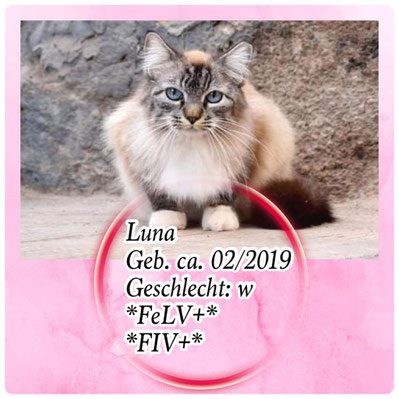 Luna hatte ein Zuhause in Aussicht, wurde dann aber leider FIV und FeLV positiv getestet.