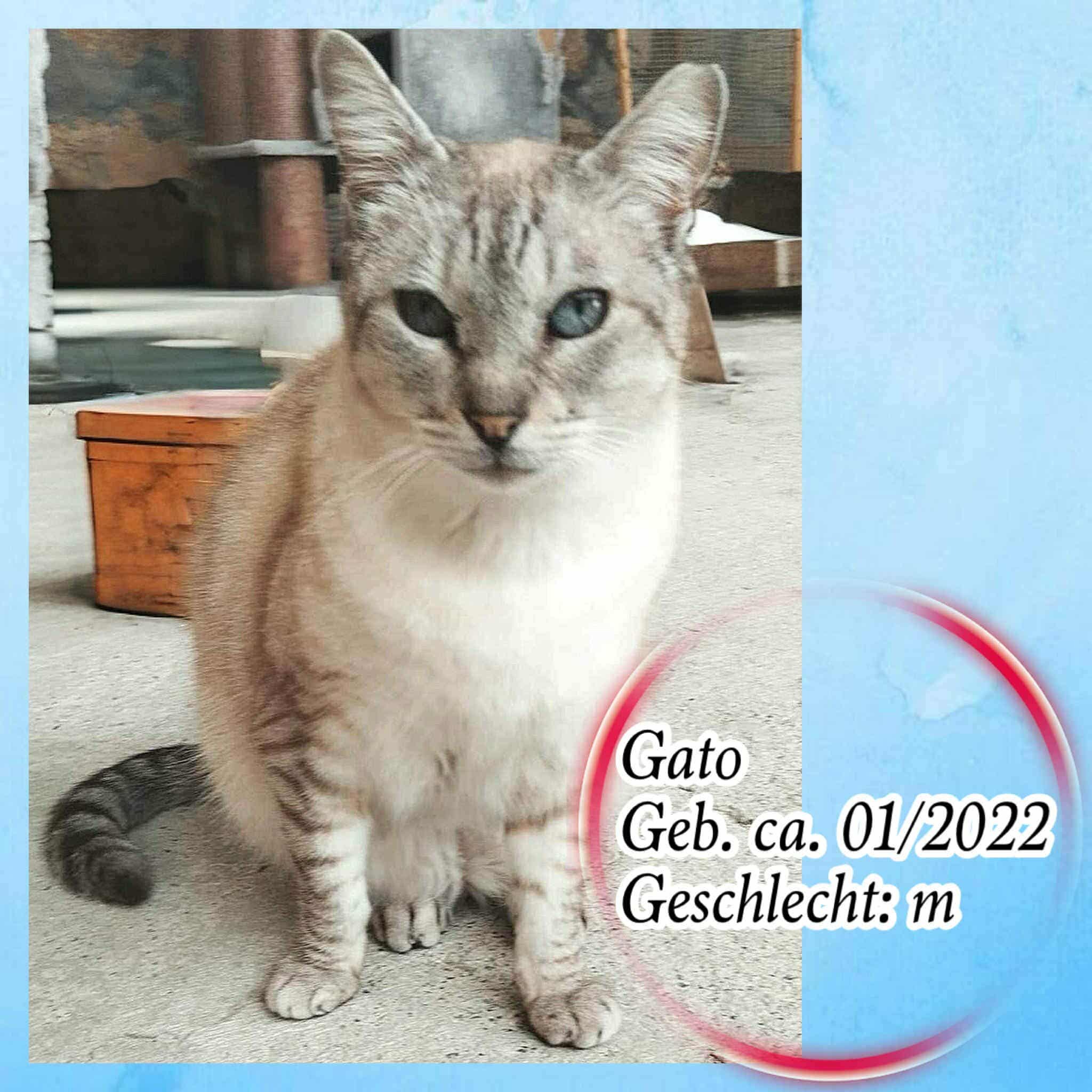 Gato wurde hungrig und durstig auf der Straße aufgefunden. Er konnte im Tierheim aufgenommen werden und hat sich dort sehr gut erholen können. Nun ist er bereit für ein eigenes Zuhause.