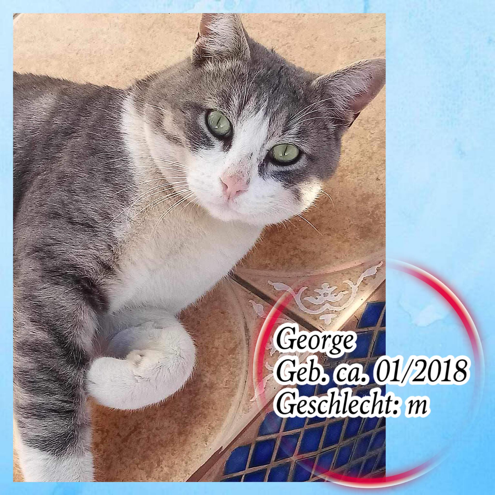 George ist ein sehr lieber und netter Katerprinz. Man merkt, dass er einmal eine Familie gehabt haben muss, er ist menschlichen Kontakt gewöhnt. Der süße Kerl zeigt, dass er sehr froh ist, wieder ein Dach über dem Kopf zu haben und Futter im Näpfchen vorzufinden.