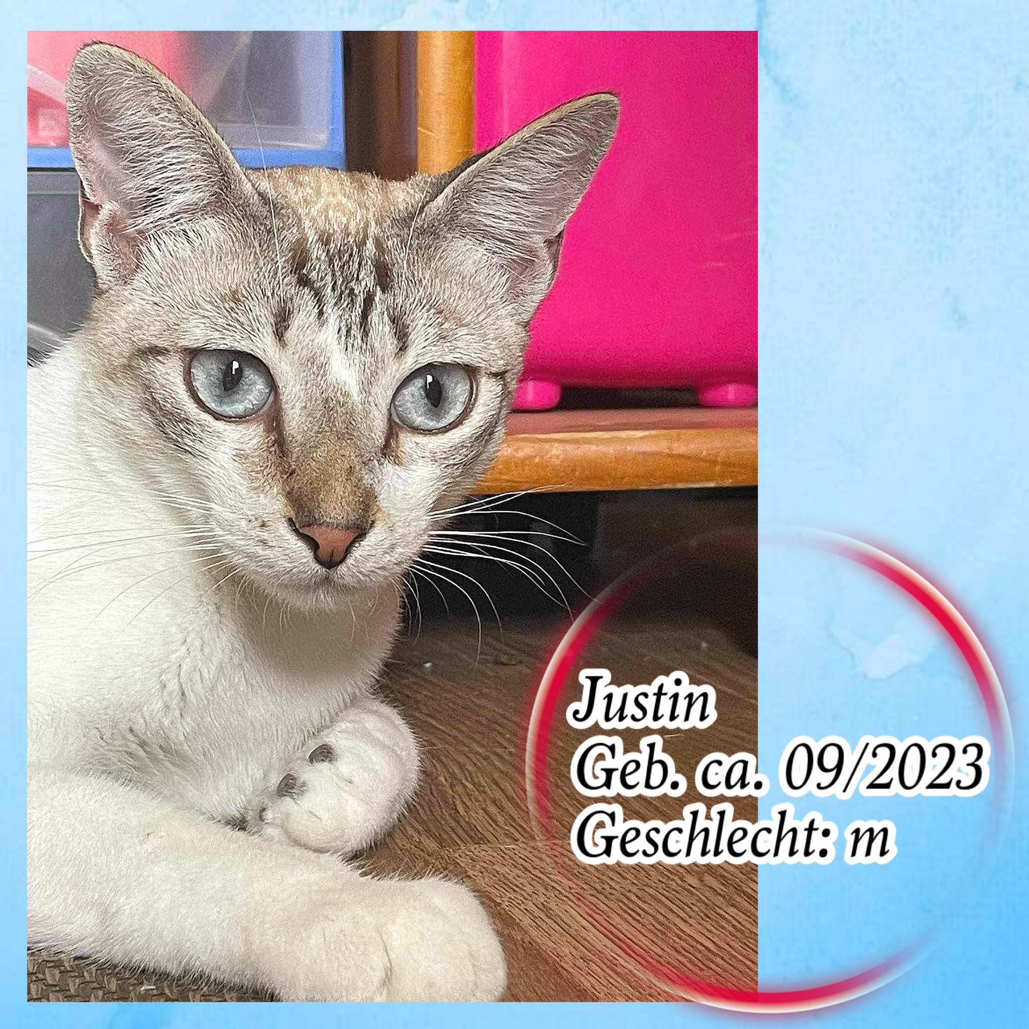 Wer möchte dem hübschen Katerprinz eine schöne Zukunft schenken und ihn liebevoll in seine Familie aufnehmen? Justin hätte es jetzt wirklich verdient, die schönen Seiten eines Katerlebens in sich aufzunehmen.