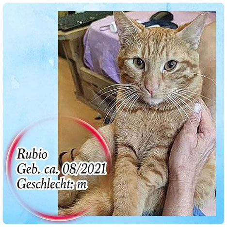 Rubio reist geimpft, gechippt, kastriert, FIV und FeLV negativ getestet und mit Floh und Wurmkur behandelt aus.